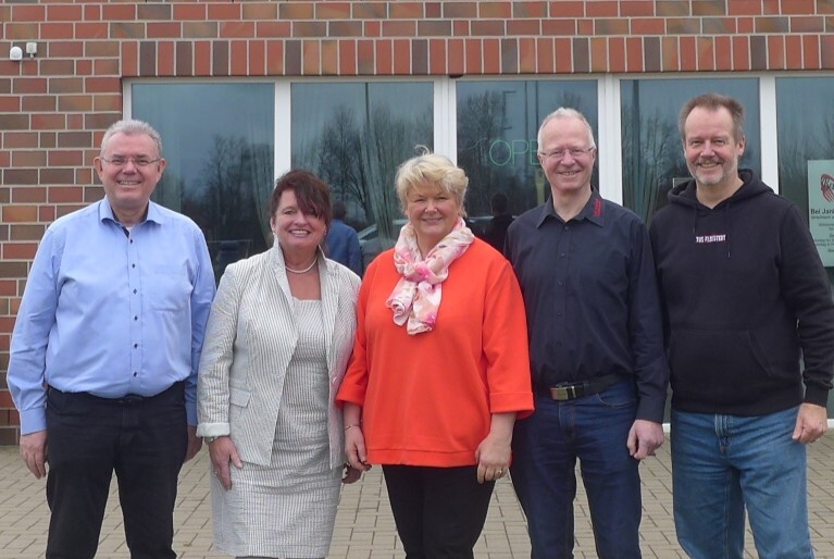 v.l.n.r: Finanzvorstand Stefan Frommann, Beisitzerin Kerstin Frank, 2. Vorsitzende Berit Rohte, 1. Vorsitzender Martin Rohte und Pressewart Ulrich Vergin. Svenja Stadler und Heiko Nowek (beide nicht auf dem Foto) komplettieren als Beisitzer den TuS-Vorstand.