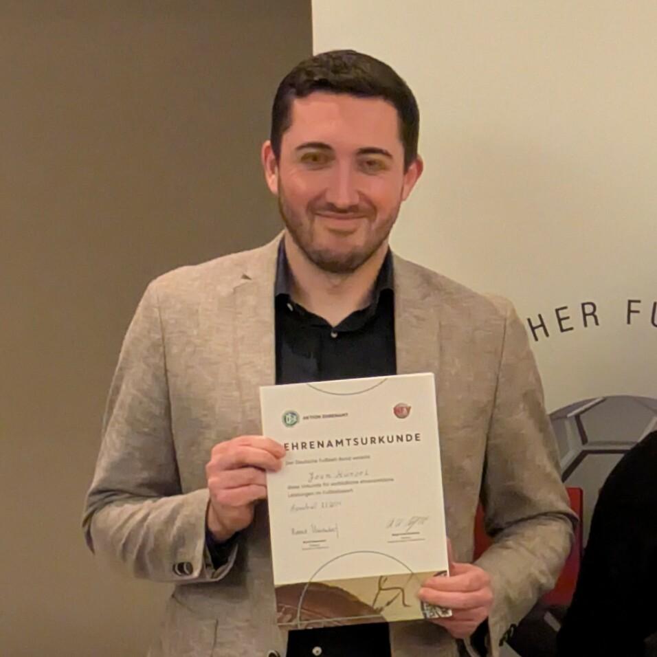 Unser Mr. Walking Football Jean Künzel wurde für seine Arbeit für den Sport vom NFV-Kreisverband Harburg mit dem Ehrenamtspreis des DFB ausgezeichnet.