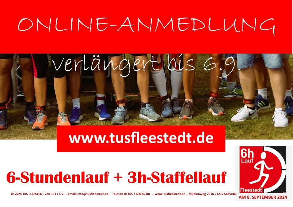 Die Online-Anmeldung für den 6-Stundenlauf in Fleestedt kann noch bis zum 6. September genutzt werden. Danach steht nur noch eine begrenzte Anzahl von Startplätzen für Nachmelder zur Verfügung, die am 8. September bis spätestens 9 Uhr im Wettkampfbüro im Sportzentrum Seevetal gebucht werden können.